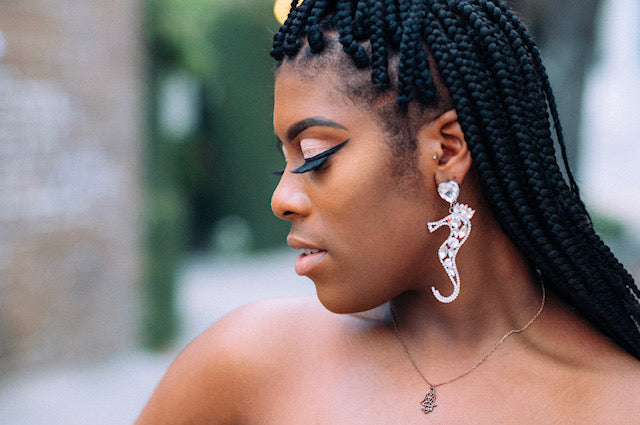 Wear your good luck charm in your ears with these statement earrings Dimensions: 4” long and 1” wide